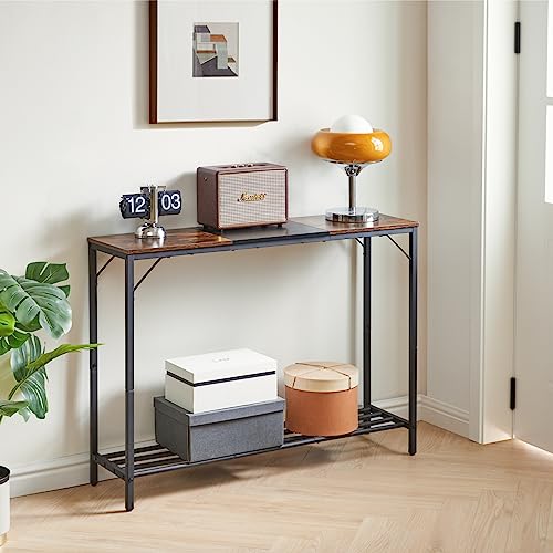 - Stable and Durable: The sturdy metal frame and environmentally friendly particle board desktop are paired with 4 diagonal bars, greatly enhancing the stability of the narrow entrance table. The bottom shelf also adds extra storage space for you.