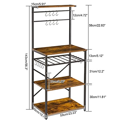 - SUPER LARGE STORAGE SPACE: The stable top panel and 4-tier shelf can hold toasters, spices, plates, wine, microwave ovens, coffee machine and other kitchen utensils. S-hooks are convenient for hanging some cooking tools. It's your best choice for storage and space saving.