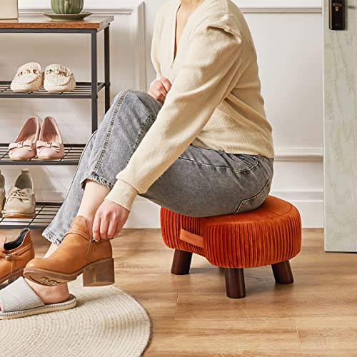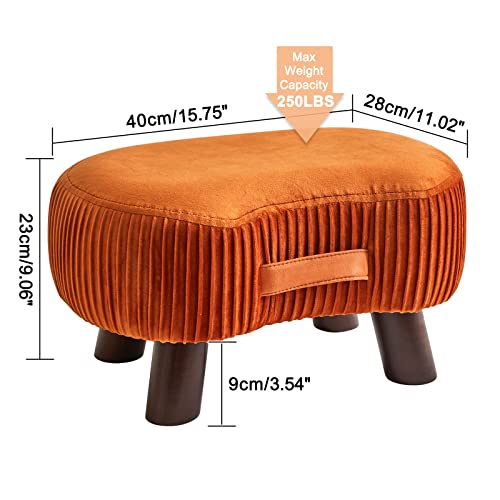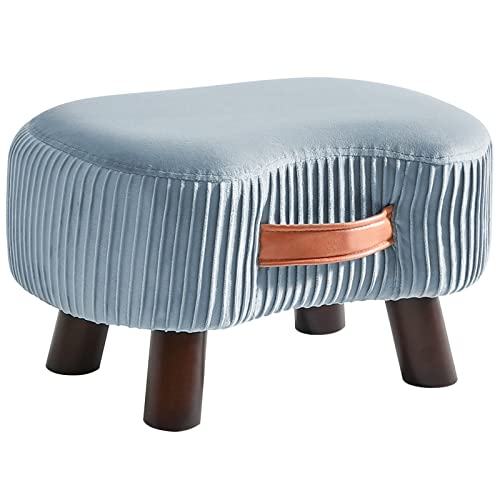 - New Design: Curved footstool with ruffled design makes this wooden ottoman stool a beautiful furniture accessory, perfect for living room and bedroom furniture. The handle design allows you to easily move it anywhere you need with just one hand. Footstool is supported by sturdy wooden legs for added stability.