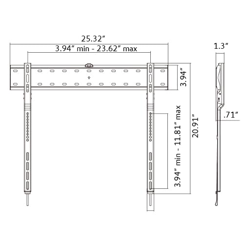 • Low Profile: Allows slim fit to wall, up to only .71″ off the wall