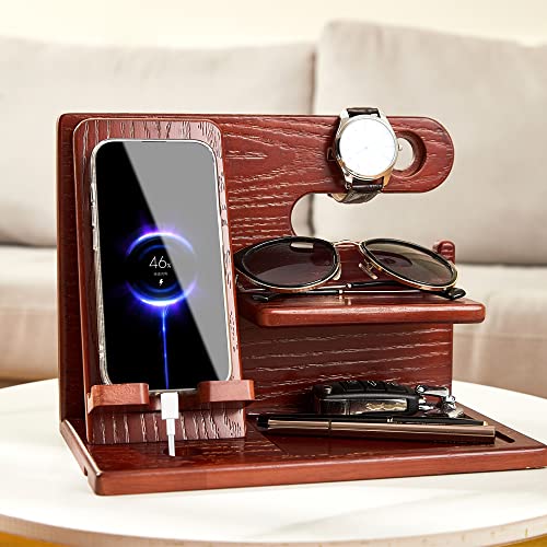 • Wood phone docking station for men for storing bedside table essentials.The dock station are specifically designed to accomodate glasses,keys,rings,wallet,coins,watch and more.Everything you need is at your fingertips!