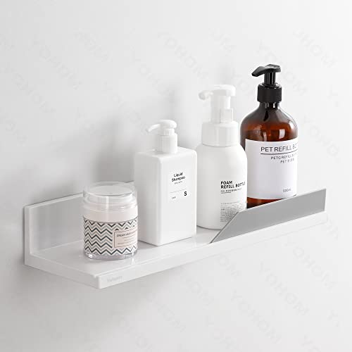 YOHOM White Adhesive Floating Shelf for Bathroom Tile Wall Stick on Shower Shelf Rack No Drilling Plastic Lightweight Shelf Organizer with Gray G