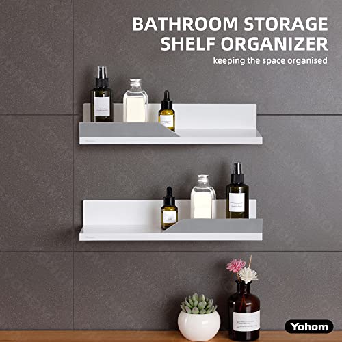 Home Bathroom Furniture YOHOM White Adhesive Floating Shelf for Bathroom Tile Wall Stick on Shower Shelf Rack No Drilling Plastic Lightweight Shelf Organizer with Gray G