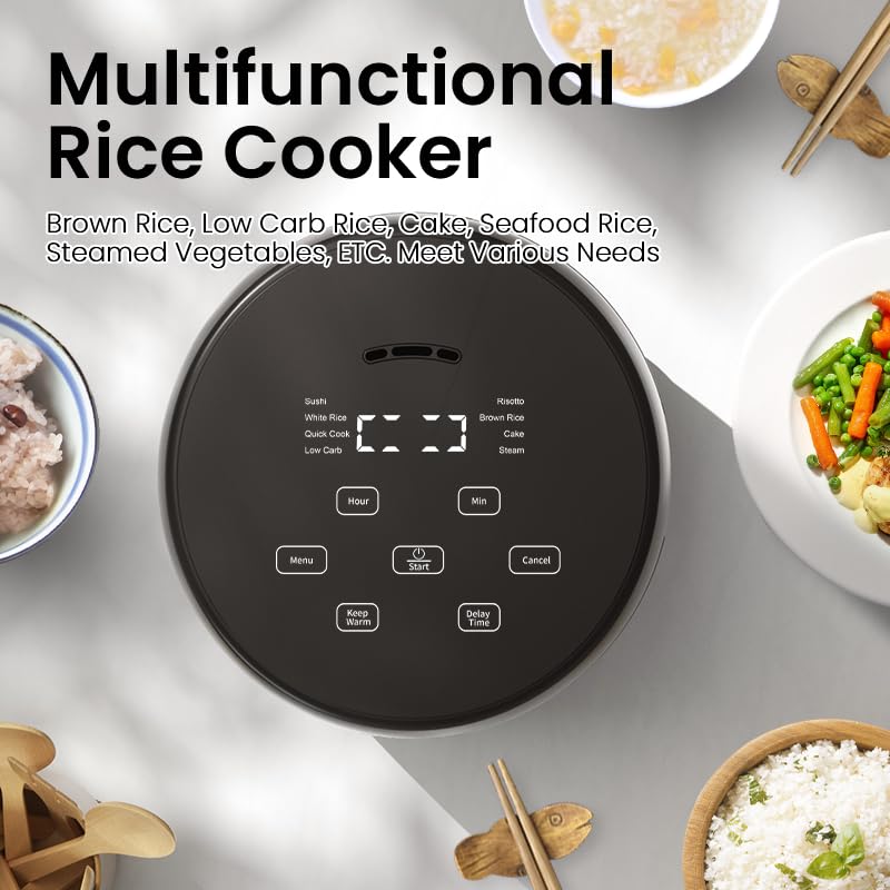 • 🍚𝙎𝙩𝙚𝙖𝙢𝙚𝙧 𝙖𝙣𝙙 𝘿𝙚𝙡𝙖𝙮 𝙏𝙞𝙢𝙚𝙧:Make the most of the carb-reducing baskets by using them not only for preparing low carb rice but also for converting the mini rice cooker into a steamer. Experience the convenience of our rice cooker’s Delay Start function, which allows you to preset your cooking time and return home to perfectly cooked rice. Once the cooking is finished, the rice cooker automatically switches to the keep-warm mode, ensuring your rice stays warm and delicious.