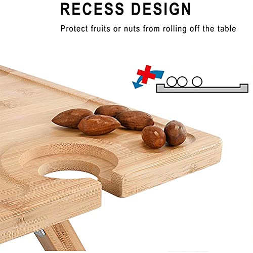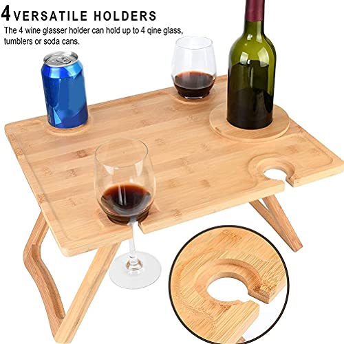 Yolluu Outdoor Wine Picnic Table, Deluxe Wooden Drinks Table Portable Bamboo Snack & Cheese,with Wine Glasses Holder for Outdoor Garden Concerts