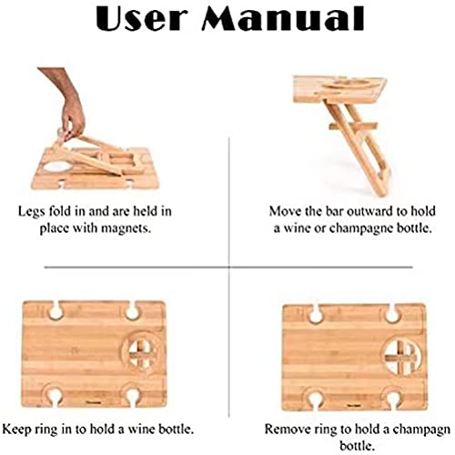 Home Garden Furniture Yolluu Outdoor Wine Picnic Table, Deluxe Wooden Drinks Table Portable Bamboo Snack & Cheese,with Wine Glasses Holder for Outdoor Garden Concerts
