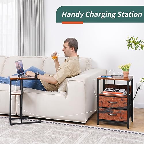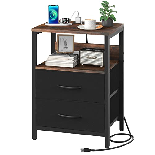 Yoobure Nightstand with Charging Station, Small Night Stand Fabric Drawers and Storage Shelf for Bedrooms, Nightstands Spaces, Bedside Table USB