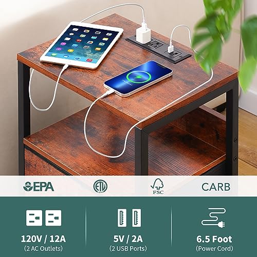 • Charging Is A Breeze! The end tables with 2 USB ports and 2 outlets allow convenient charging for your phone or iPad. This small table is superior in its more humanized design of outlets, which possesses the just right layout between two outlets to avoid the cables mess in multi-device charging. Besides, the nightstands are certified by FCC and ETL for safety compliance.