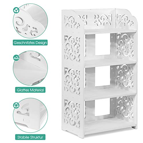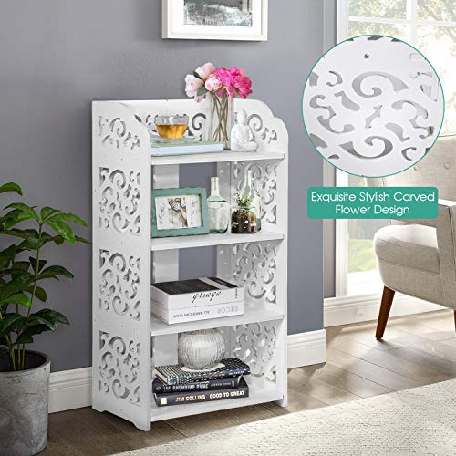 - 【Unique Carving Design】: This shoe frame adopts a simple and modern carving design, making this small white bookshelf look larger, more beautiful, and play a good role in modifying