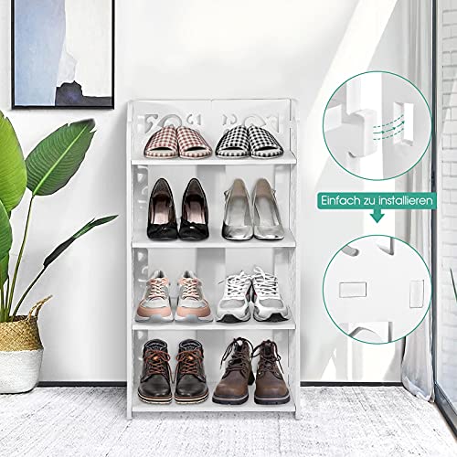 - 【Enough Storage Space】: There are four floors of the shoe rack. This storage rack can ensure sufficient ability to store shoes and keep the shoes tidy to make your family well organize. Usually only need to clean the dust and stains with a wet cloth to keep it clean