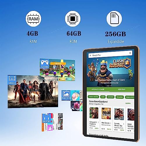 • High-performance tablet: Adopted Android system (certified by Google) with 4 GB RAM and a high-performance quad-core MediaTek processor, this Android tablet offers fast app launch and smooth operation, ideal for watching videos, video conferencing, reading books and surfing the Internet.