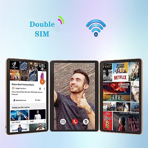 • Eye-pleasing HD IPS display: The 10-inch Android tablet adopts a 1280 x 800 IPS glass touch screen, which presents sharp and crisp images. The tablet has a 2 MP front camera and a 5 MP rear camera, with a SIM card, allowing you to take photos and make calls anywhere. With the reading mode, you will feel like reading on paper. At night, read with Eye comfort, which reduces eye fatigue.