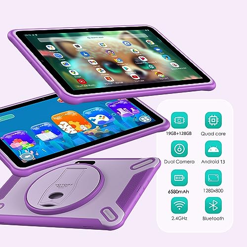 YOTOPT 10" Kids Tablet, Android 13.0, 19GB RAM 128GB ROM (SD Expandable), Parental Controls, HD IPS Screen, Quad Core, 5MP+2MP, WiFi, Bluetooth,
