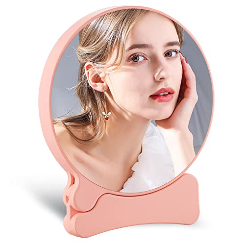 - Folding Design: Vanity mirror compact and portable folding handle design, the concave handle can help you easy to open or close. The full circular mirror design is more suitable for human face, you can see every inch of the skin features of your face, which is more convenient for you to makeup.