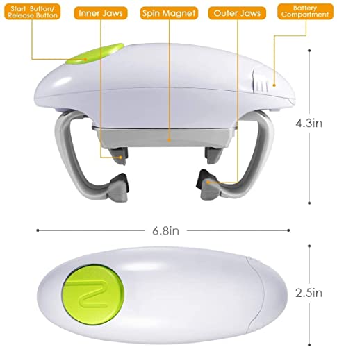 YUET Electric Opener Can Jar Bottle Openers Smooth Edge Portable One Touch Automatic Opening Kitchen Gadget Tool Battery Operated Hands-Free for
