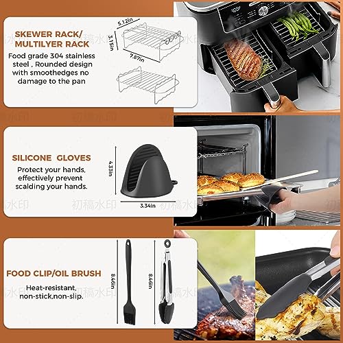 - 【High-Quality Material】: Safe, non-toxic, scratch-resistant and wear-resistant. Made of food-grade silicone and stainless steel, the Ninja dual air fryer accessories can withstand temperatures up to 450°F and as low as -40°F. health and safety.