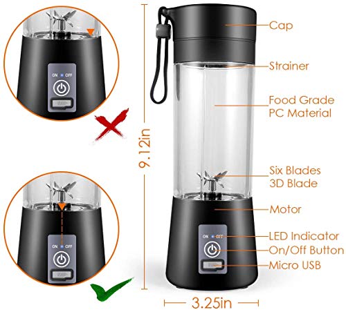 HomeSmall Appliances YurDoca Portable Personal Blender for Shakes and Smoothies, Personal Size, USB Rechargeable Mini Fruit Juice Mixer, Juicer Blender Bottles Travel