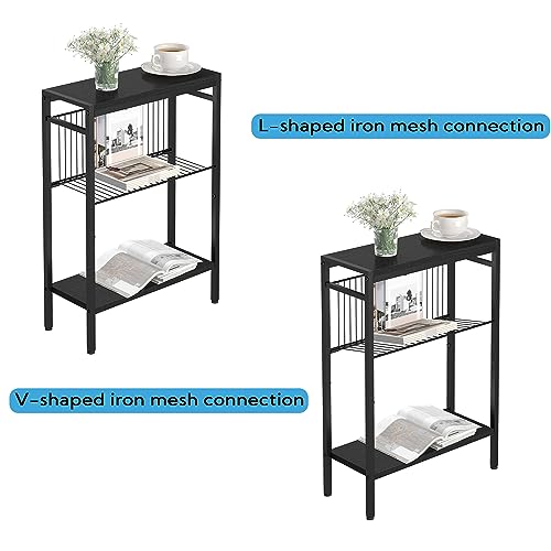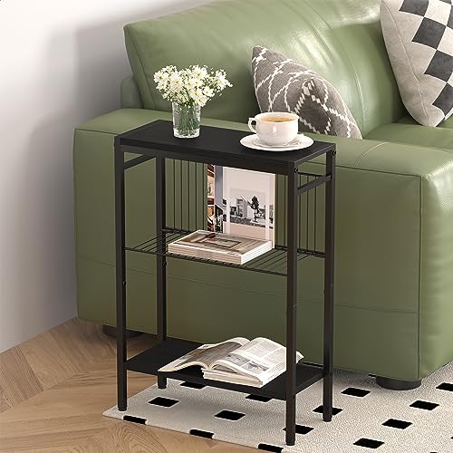 - Books or Snack Storage: Our slim side table with 1 adjustable metal mesh and 2 wood storage shelves, can be used to store your favorite snacks or books