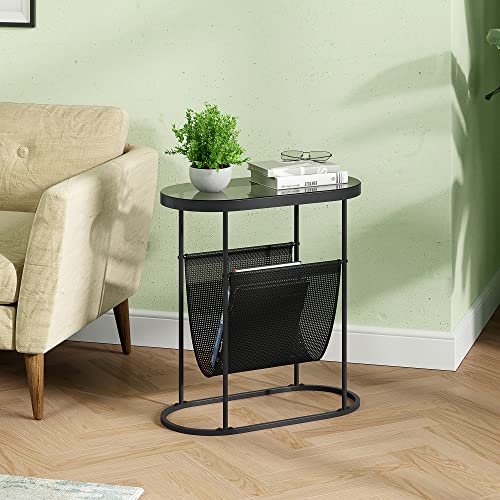 Yusong Tempered Glass End Table for Small Space, Narrow Oval Side Tables Living Room, Little Skinny Bedside Table Slim Nightstand with Magazine H