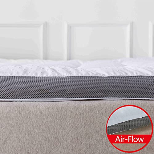 - · ✓【NEW FABRIC AND DESIGN】- New improved premium 3D fabric and mesh gueest to give a massaging effect while you sleep.this topper has gone through several improvement base on millions of feedback to meet your high standard demand. Great for back/shoulder pain