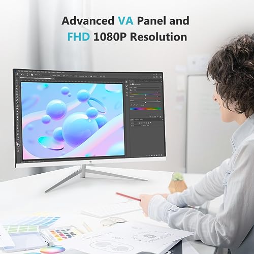 - Full HD Resolution & 1800R Curved Screen - FHD resolution (1920x1080) delivers crystal-clear picture quality and brilliant visuals. The 24 Inch curved screen provides an immersive feeling while playing games or watching movies, helping to fill in our peripheral vision, so you can enjoy a stunningly wide field of view.