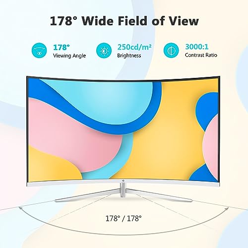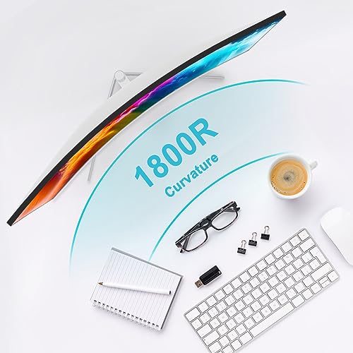 • Full HD Resolution & 1800R Curved Screen - FHD resolution (1920x1080) delivers crystal-clear picture quality and brilliant visuals. The 27 inch curved screen provides an immersive feeling while playing games or watching movies, helping to fill in our peripheral vision, so you can enjoy a stunningly wide field of view.