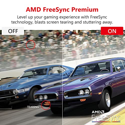 - FreeSync & Eye-Care - AMD FreeSync Premium Technology virtually eliminates the screen tearing, stutter, and input latency, presenting you the exceptional gaming experience. Flicker free and low blue light features reduce eye fatigue after prolonged use.