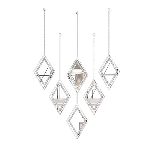 - Product Size: Set of 6, Each side of the Diamond Mirror is 7.1" x 11.4", and the dainty chain is 15.7". The rivets of the crystal ball make this decorative mirror look more advanced and beautiful.
