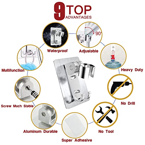 - 2- YOU WILL GET- You will receive 1 Pack of stackable shower head holder replacement. It is easily adjustable shower head holder with it 3.89 Height & 2.95 Width). Our Premium shower holder bracket requires no drilling, no nail installation, no complicated installation, no need to destroy the wall.