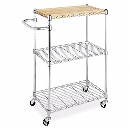 ZCMEB 3 Tier Kitchen & Microwave Trolley 60x35x85CM Storage Rack Wood & Chrome Utility Storage Trolley