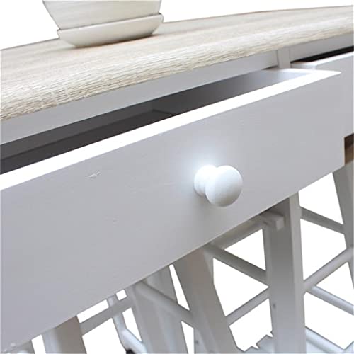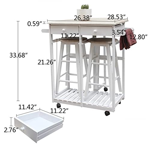 ZCMEB Dining Room Kitchen Foldable Wooden Handle Semicircle Dining Cart With Round Stool White
