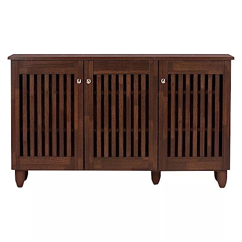 ZCMEB Home Hallway 3-Door Wooden Entryway Shoes Storage Wide Cabinet Shoes Rack Shoe Storage