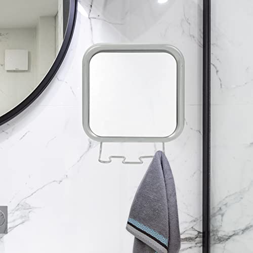 - 🔥PORTABLE VANITY MIRROR ;Shower Mirror Shaving Mirror with Hook Holder Suction Fogless Mirror Travel Makeup Mirror Wall Hanging Mirror Bathroom Organizer Suction cup design, the mirror will not hurt your wall, and you can adjust mirrors position freely.