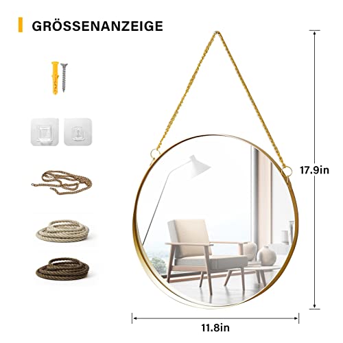 Product Description This product is a high quality black wall mirror with round metal frame. The one-piece, high-quality metal frame is inlaid with a high-resolution round mirror. There are two sizes available. With the decoration in mind, it is equipped with an opening for interchangeable lanyards and comes with three types of mirror straps. The classic rustic two-tone hemp rope and modern minimalist gold chain. So that your one-time purchase is not limited to one time use. This order comes with a mounting hook kit for easy installation. This will be the perfect addition to your bathroom, hallway, living room or bedroom wall space. Exquisite workmanship We use high quality silver glass that reflects natural and artificial light beautifully whether day or night. The outer shape of the arched flower window taken from the church gives this mirror another beauty. Wide range of applications he mirror can be attached directly to the wall with the included adhesive hooks, or you can choose another sling. The hooks on the back are suitable for almost any place indoors and outdoors. Excellent materials The mirror is made of high quality copper free silver mirror with good rust and oxidation resistance. The back is covered with an explosion-proof film to prevent accidental injury caused by shards.