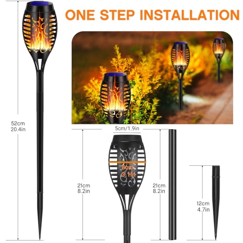 • Wireless design and easy installation: the solar torch is easy to install, the extra long handle provides firm support in the ground, no wiring or required screws are required. All you need to do is put the light of the sun flame into your lawn, in a flower pot or even in a parasol base and your outer fire is ready. Application in areas such as yard, tracks, swimming pool, garden, bench, patio, fence, patio.