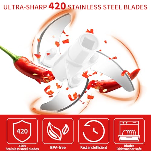 - 【DESIGN DETAILS】This hand chopper adopts an ergonomic design,stainless steel blades and mixers cut almost all types of food quickly and easily and are also suitable garlic grinder for mixing and stirring sauces and dips.The manual food chopper is perfect for blending soft ingredients such as eggs, flour, milk and fruit doughs, sauces or smoothies.