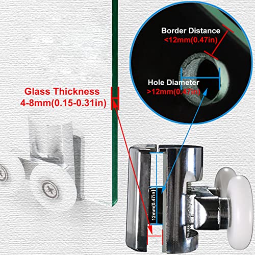 - These rollers fit glass where the distance between the centre of the fixing hole and the edge of the glass is <12mm(0.47in)