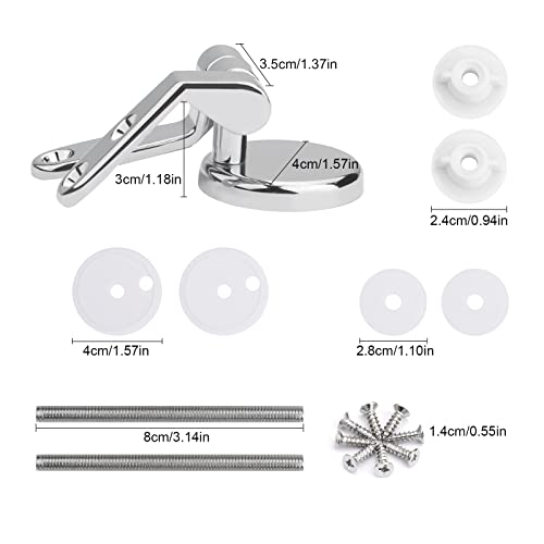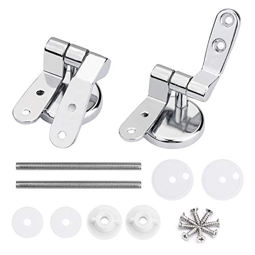 - 【MATERIAL】The chrome finished replacement kit including Zinc Alloy Hinges + Accessory Kit + Stainless Steel Screws, toilet seat hinge kit.