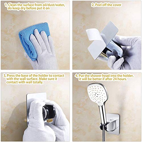 - 𝐂𝐎𝐌𝐏𝐀𝐓𝐈𝐁𝐋𝐄 𝐖𝐈𝐃𝐄 𝐀𝐏𝐏𝐋𝐈𝐂𝐀𝐓𝐈𝐎𝐍: This Adhesive Shower Head Bracket is suitable for a variety of Smooth Marble, Metal Surface, Plane Ceramic Tile, and Smooth Glass. Please DO NOT put it on the textured tiles, concave tiles, frosted glass or rough wood. Mounts on any surface without requiring any drills, nails or screws. Won't leave any holes on your walls!