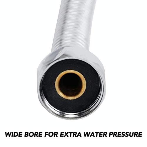 • WIDE BORE SHOWER: The 1.5m (39") hose is made of hard wearing stainless steel, with brass inserts and non-toxic, high pressure resistant, material inner pipe. The easy clean chrome finish ensures your shower looks great in any bathroom!