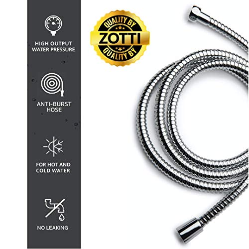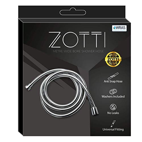 Home DIY & Tools Zotti Wide Bore Shower Hose – 1m | Stainless Steel Replacement Shower Hose | Leakproof and Anti-Kink | Universal Standard Fitting | High Pressure