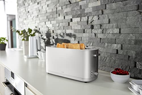 - CRUNCHY OUTSIDE SOFT INSIDE - The 4 independent heating elements brown each toast evenly on both sides, even if it roasts several times. The toasting time is shortened accordingly and the automatic shut-off function prevents toast from burning. Thanks to the stop button, you can also interrupt each toasting process ahead of time if desired.