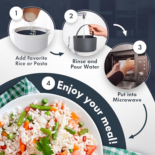 • CLEAR COOKING GUIDE – No more guesswork with our straightforward instructions, covering cooking times and water ratios for various grains and pasta, ensuring perfect results every time with our microwavable cookware.