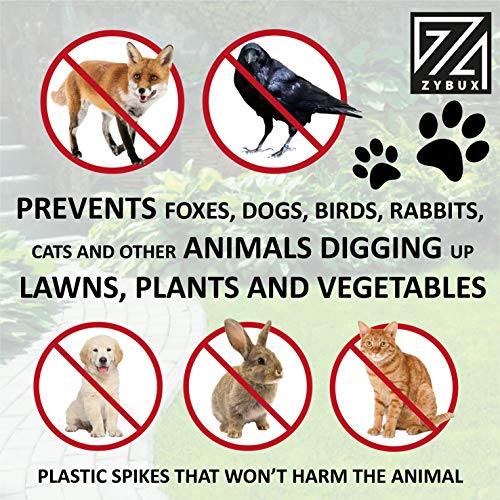 - ✔️ 🐶 The plastic ZYBUX prickle strip dig stopper contains a humane repellent solution that will keep cats, dogs, foxes, birds, crows, seagulls, and squirrels from digging in your garden. It is flexible and adaptive and can be used in a variety of settings.