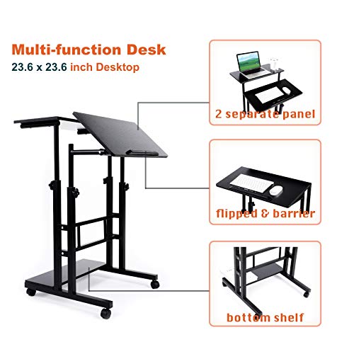 - Flexible Moving to Anywhere - You can wheel this rolling standing desk to anywhere only if you install the four flexible and premium rubber castors.The 360 degree rotation wheels make you easy to slip even on carpet and 4 with brake help you stop anywhere you want